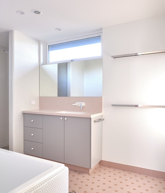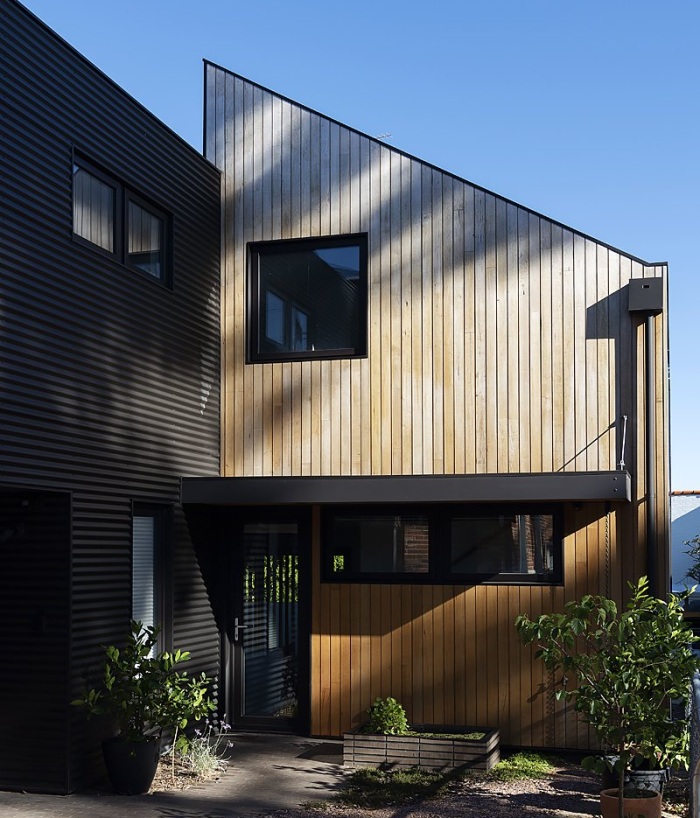 The site was a rear block on a tiny 184m2, so we worked with them from the early stages of design to integrate an offsite prefabrication approach. This allowed us to erect and dry-in the house in just four days.