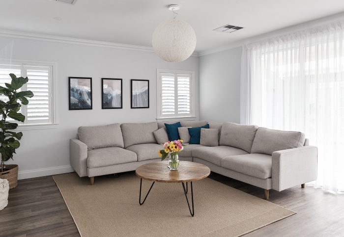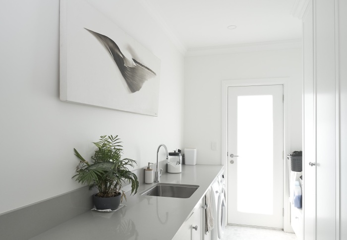 The house has a simple 175m² foot-print based on a central hallway leading to the north facing main kitchen/dining/living layout and into the rear deck and entertaining area.